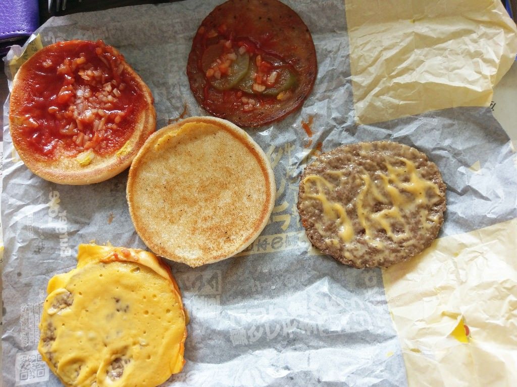 マックのバーガーはラップの中はああいうふうになるように作るのがマニュアルだったりするのよ…